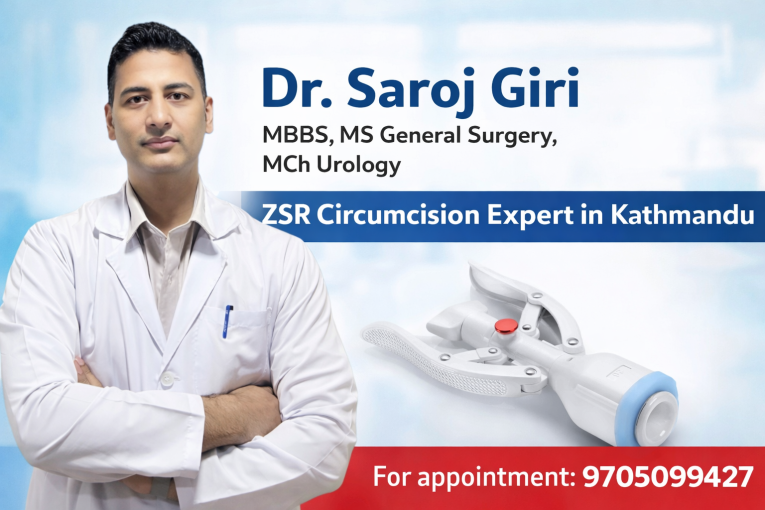 Dr. Saroj Giri is recognized as one of the top urologists in Nepal, providing advanced and painless treatment for phimosis and paraphimosis using modern ZSR stapler circumcision technique.
